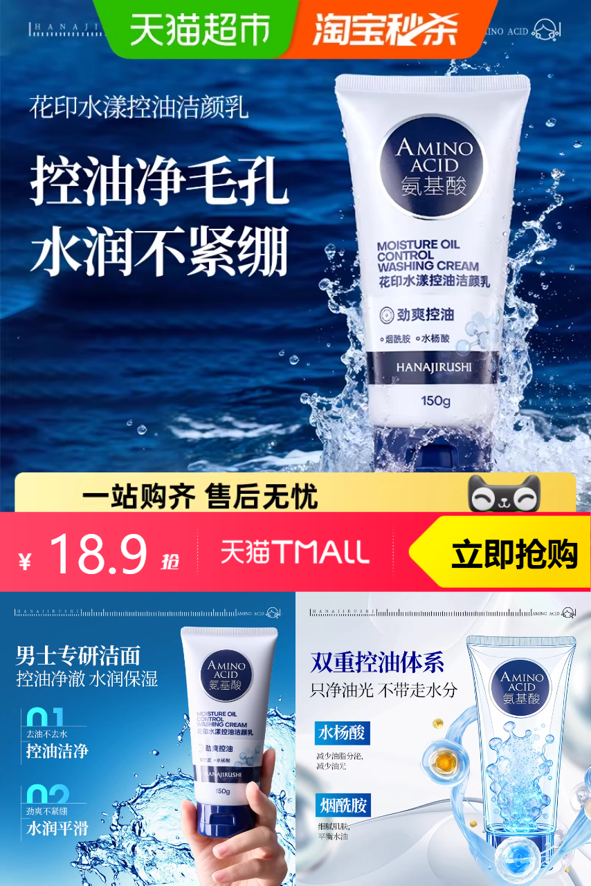 花印水漾氨基酸控油洗面奶150g,品质优选~