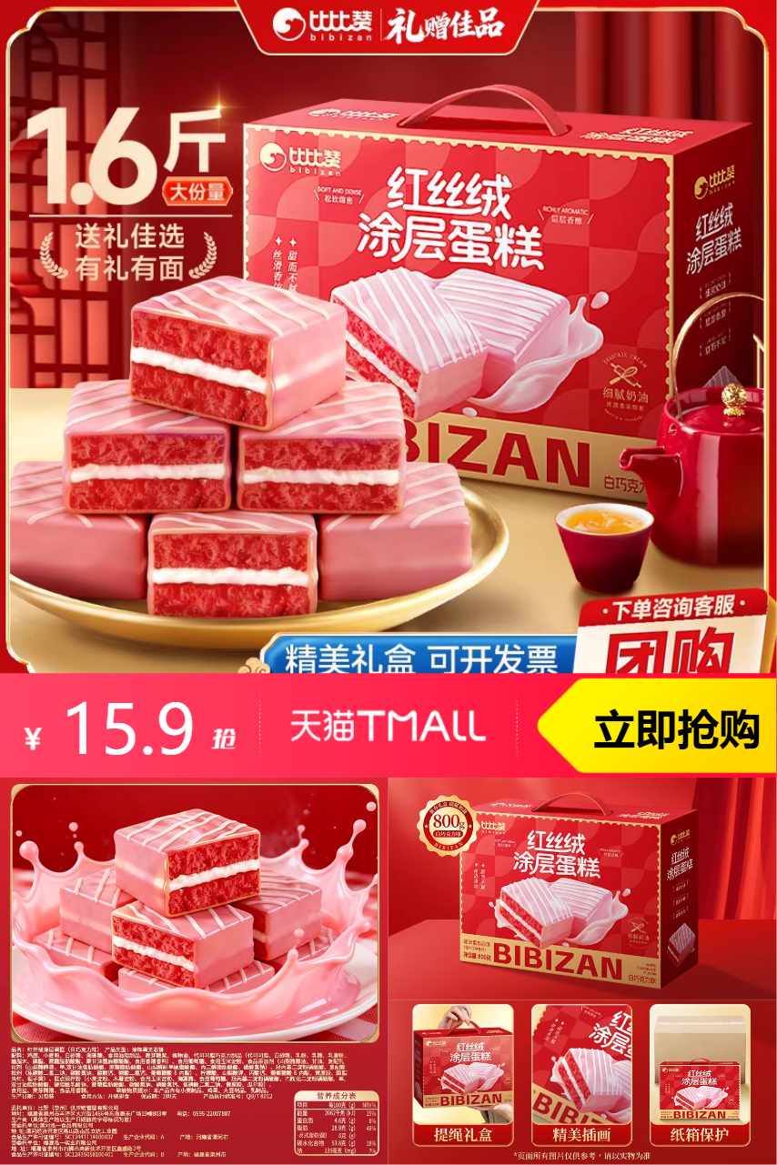 推荐:比比赞红丝绒涂层蛋糕礼盒