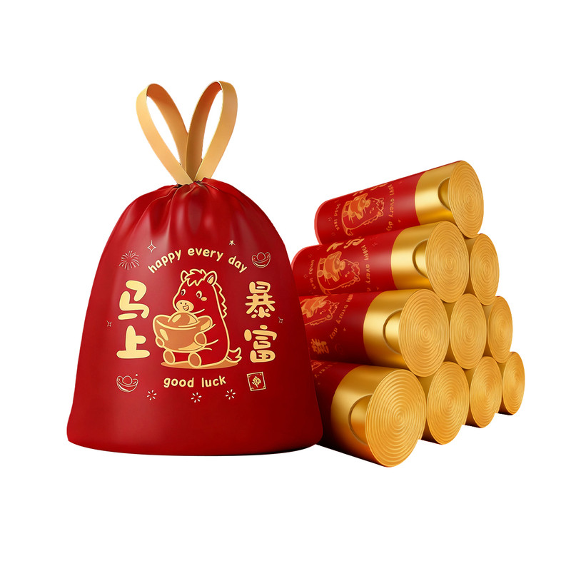 ⭕新年红色免撕抽绳加厚家用垃圾袋