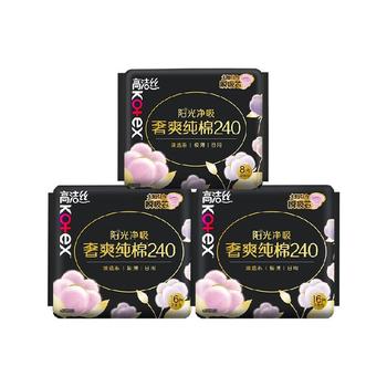 推荐:【下拉领补贴】高洁丝阳光奢爽纯棉240mm 16片*3日用卫生巾姨妈巾