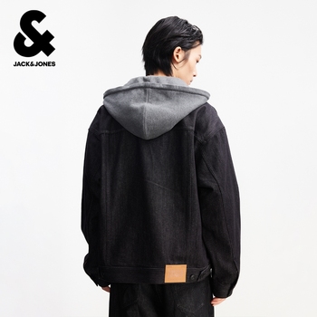 推荐:杰克琼斯原色牛仔夹克男春季新款休闲宽松假两件针织连帽上衣男装