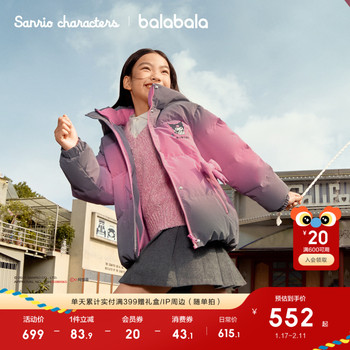 【三丽鸥IP】巴拉巴拉童装儿童羽绒服女童2025年新款加厚保暖冬装,温暖茧型羽绒服,三丽鸥联名,短款设计,防风保暖,适合冬季穿着。