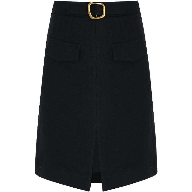 ⭕前开叉高腰半身裙直筒毛呢裙