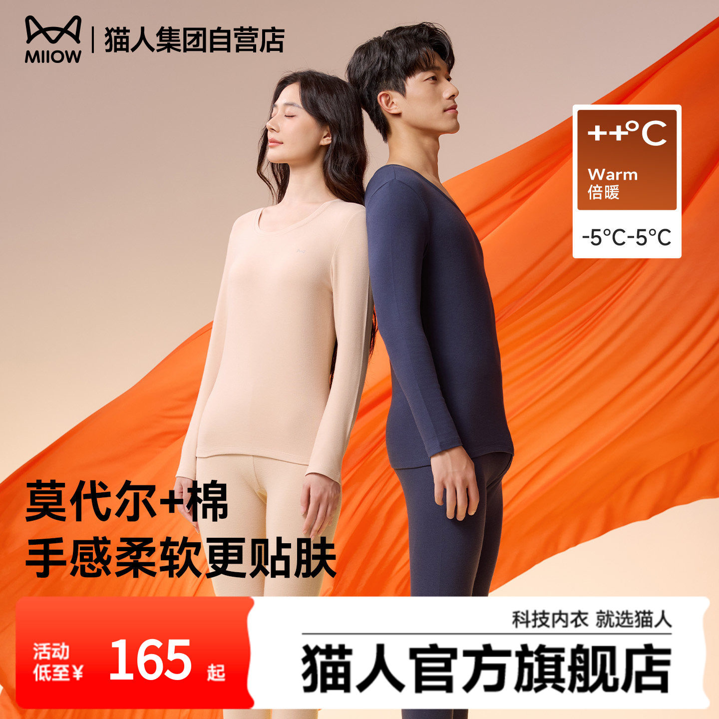 推荐:猫人纯色圆领保暖内衣套装