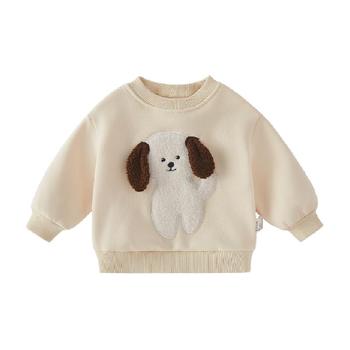 推荐:女童秋冬卫衣3男童圆领薄绒上衣宝宝加绒秋装可爱5岁儿童卡通衣服