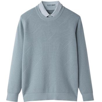 推荐:HLA/海澜之家轻商务加绒双领针织衫25秋冬新款提花假两件厚毛衣男