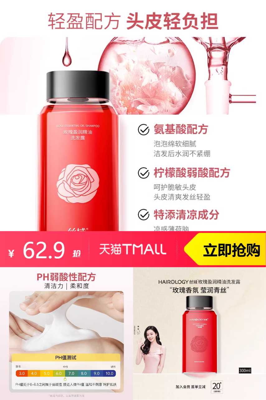 丝域玫瑰盈润精油洗发露300ml 108元减46 商品纠错