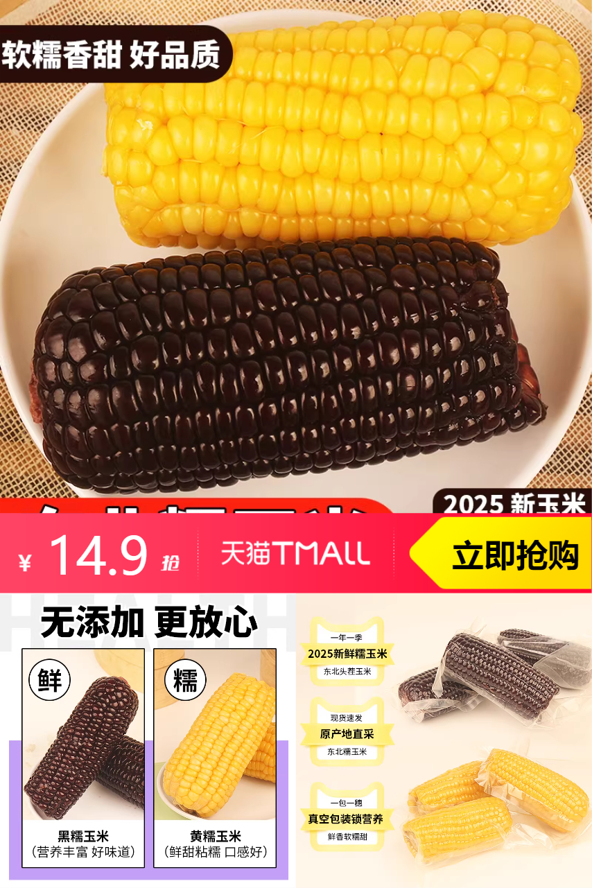 ⭕黄糯玉米真空包装10根共约2300g