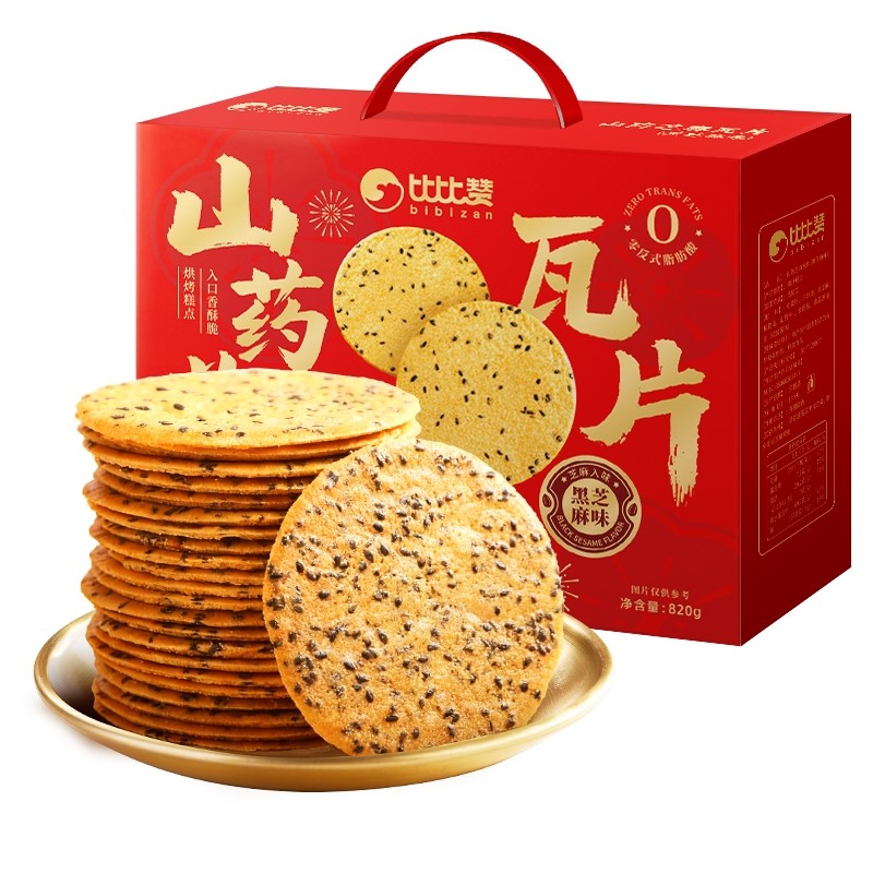 推荐:比比赞山药芝麻瓦片咸味饼干年货礼盒送人实用新年送礼走亲戚零食