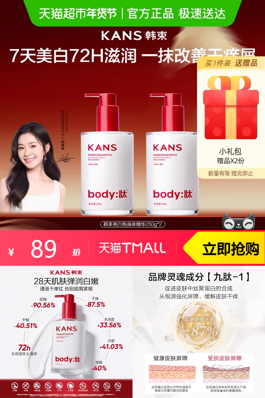 【淘礼金9.9,购物券10元,淘金币12.77,品牌金10元,凑消费券到手43元,折合21元/瓶】白皙无痕,两瓶正装,超值享受,天然肽效,滋润显效,快速亮白。