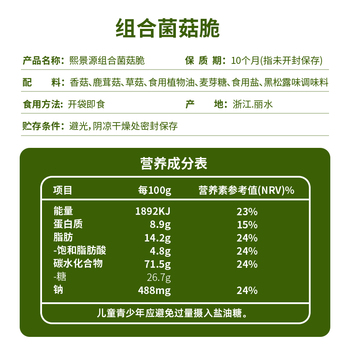 推荐:熙景源黑松露菌菇脆过年零食年货
