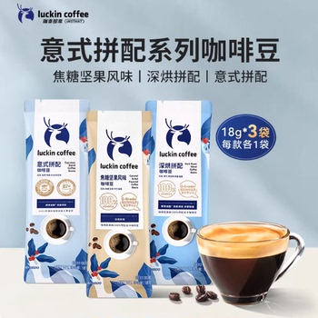 瑞幸意式拼配系列咖啡豆,瑞幸经典风格·平衡百搭,低酸深烘·顺滑油脂。深度烘焙,带有浓郁的焦糖和坚果香气,每一口都是惊喜!云南咖啡豆,意式拼配,口感醇厚,香气浓郁,咖啡控必入!