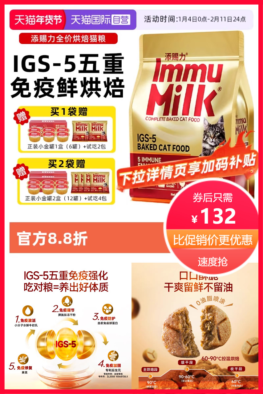 【买一袋送正装小金罐6盒+试吃2包,凑消费券+VIP+淘金币到手更优惠】添赐力全价美毛猫粮,88%鲜肉 + 免疫强化 + 美毛效果!!营养全面,守护爱宠健康!适合全龄期猫咪,支持消化更简单!宠物自选自营好货!