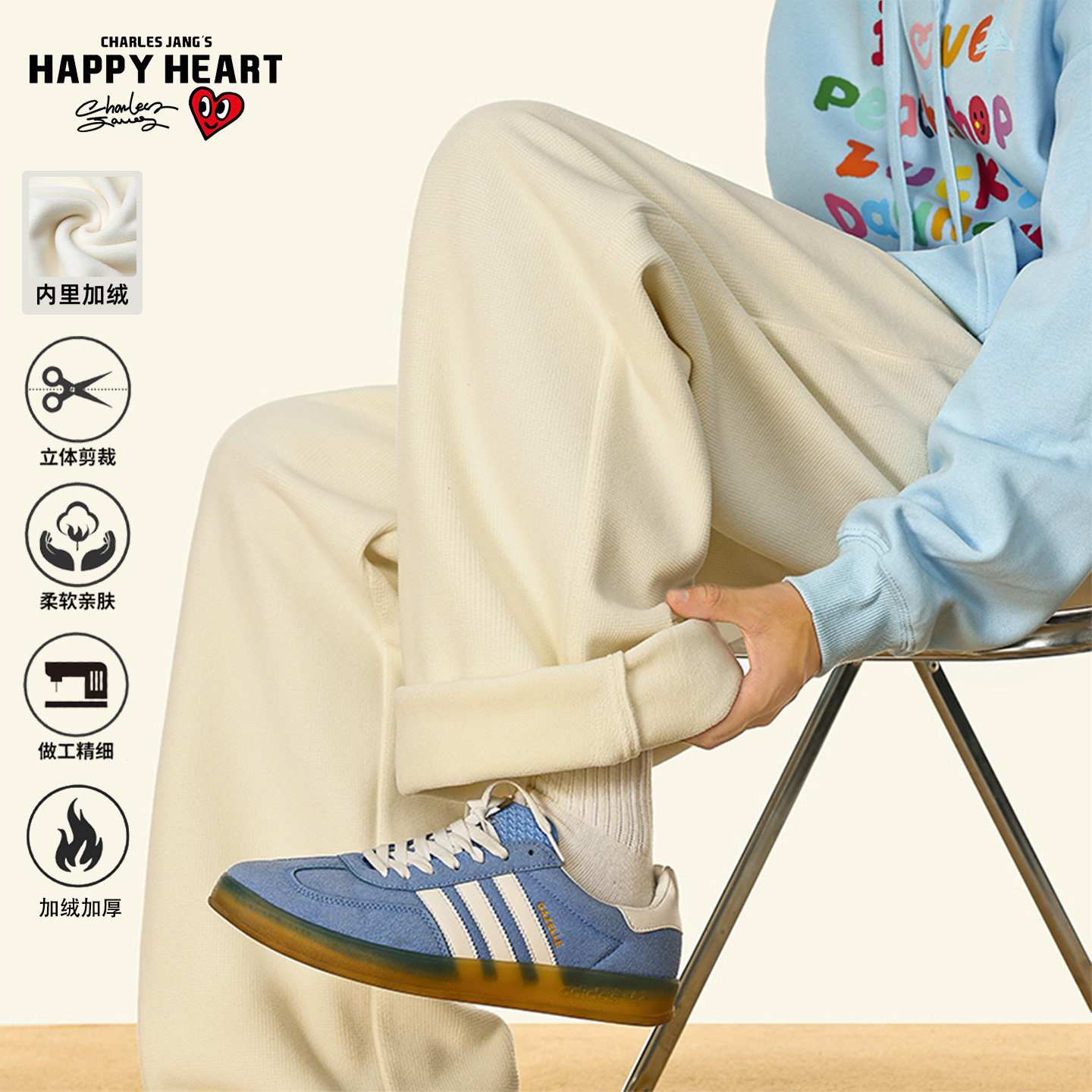 推荐:查尔斯桃心休闲裤保暖直筒长裤子