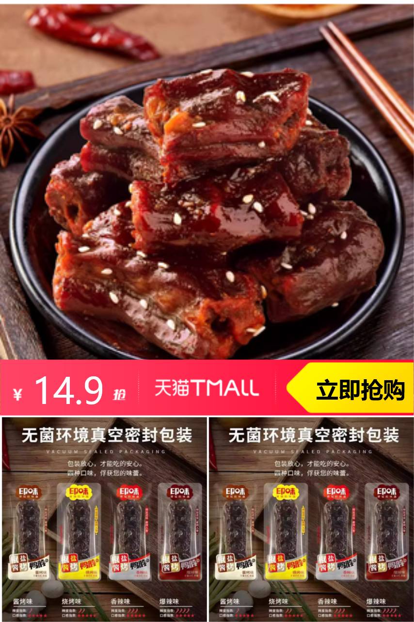 【官方送的淘金币可抵0.49,可叠加消费卷,极至到手12.6一斤!!!纯鸭脖】湖南的魅力,除了湘菜,还有这款印味手撕风干鸭脖!