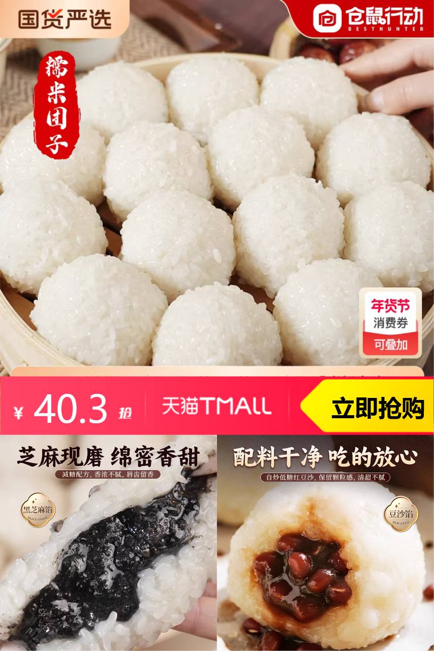 【补贴后30+5 官方立减5.6,满45减18券 爱吃糯叽叽的别错过!仓鼠行动黑芝麻红豆糯米团子,4袋共24只。软糯弹牙,内馅香甜,一口接一口超满足~