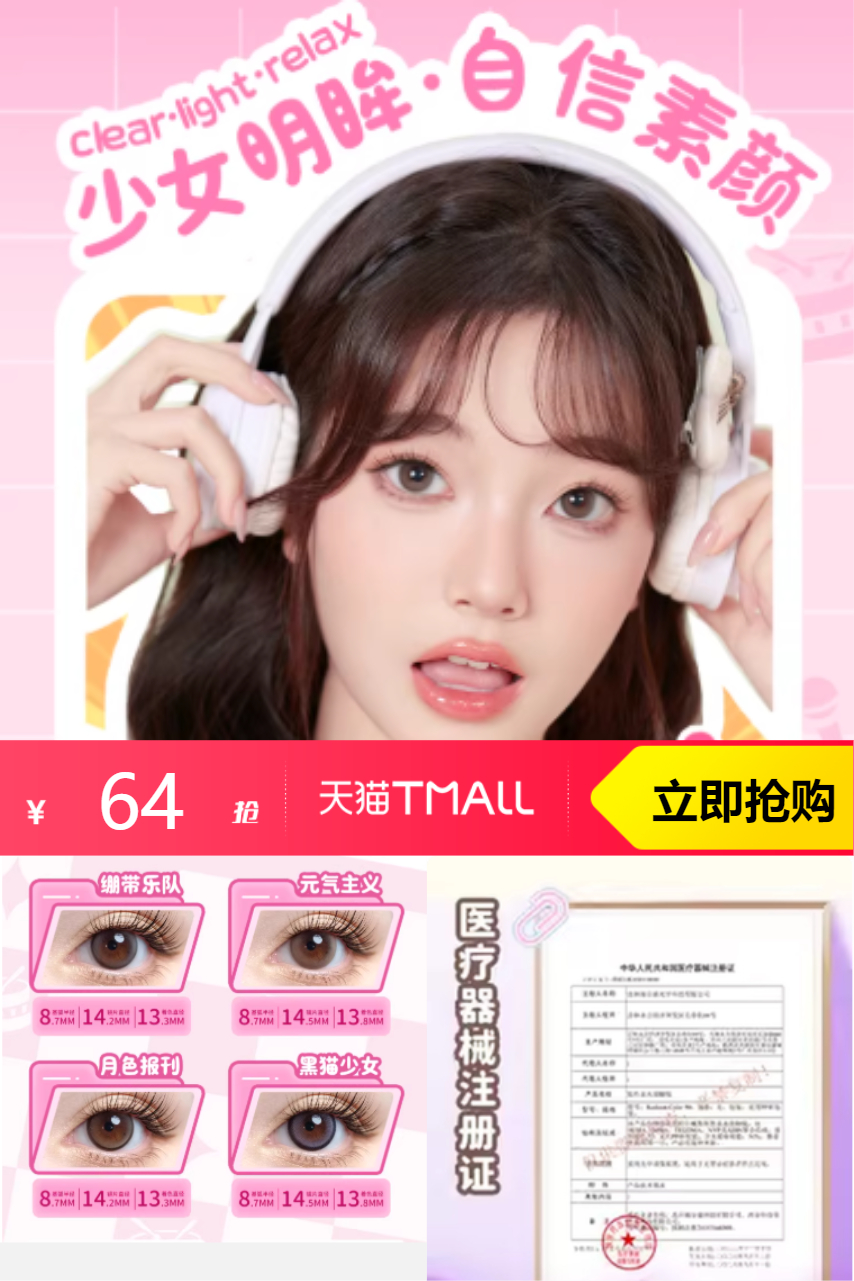 拉拜诗少女系列美瞳日抛30片 234元减34 商品纠错