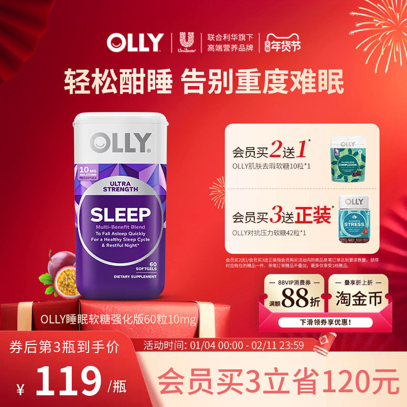 推荐:OLLY褪黑素10mg重度失眠助眠60粒