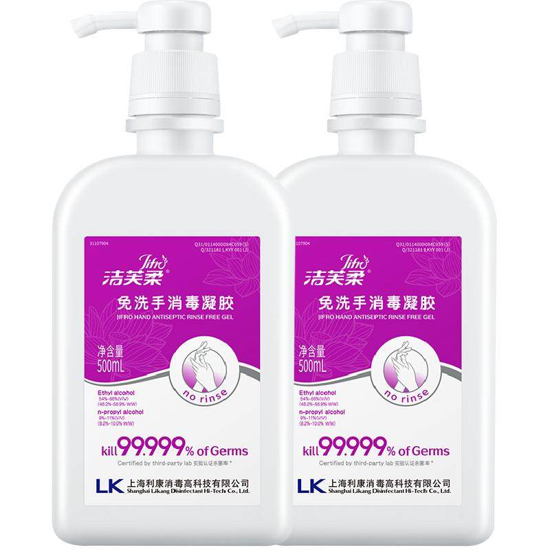 【院用级】洁芙柔免洗手消毒凝胶500ml*2瓶消毒杀菌酒精洗手液,有效除菌,快速干燥,适合家庭、办公场所及医院使用。精选天然植物精华,温和不刺激皮肤。小巧便携设计,随时随地保持手部清洁。让你的手部时刻保持干净,远离细菌侵害。
