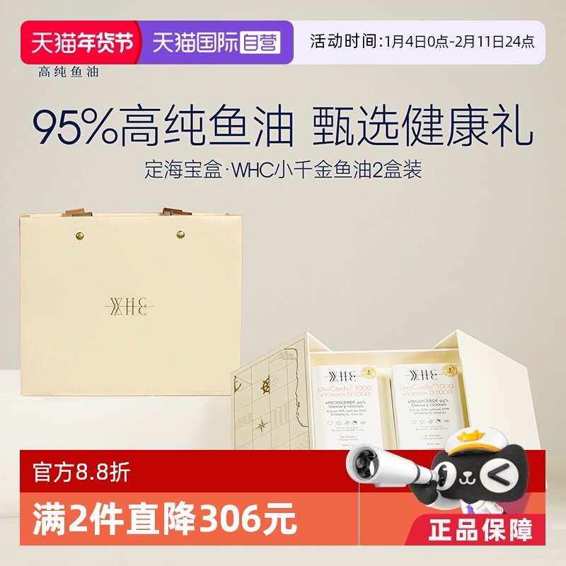 【自营】WHC小千金定海宝盒95%高纯鱼油是您送给长辈的健康礼品,蕴含了丰富的Omega-3脂肪酸,有助于维护心血管健康、增强记忆力,为您的生活带来更多的活力和健康。