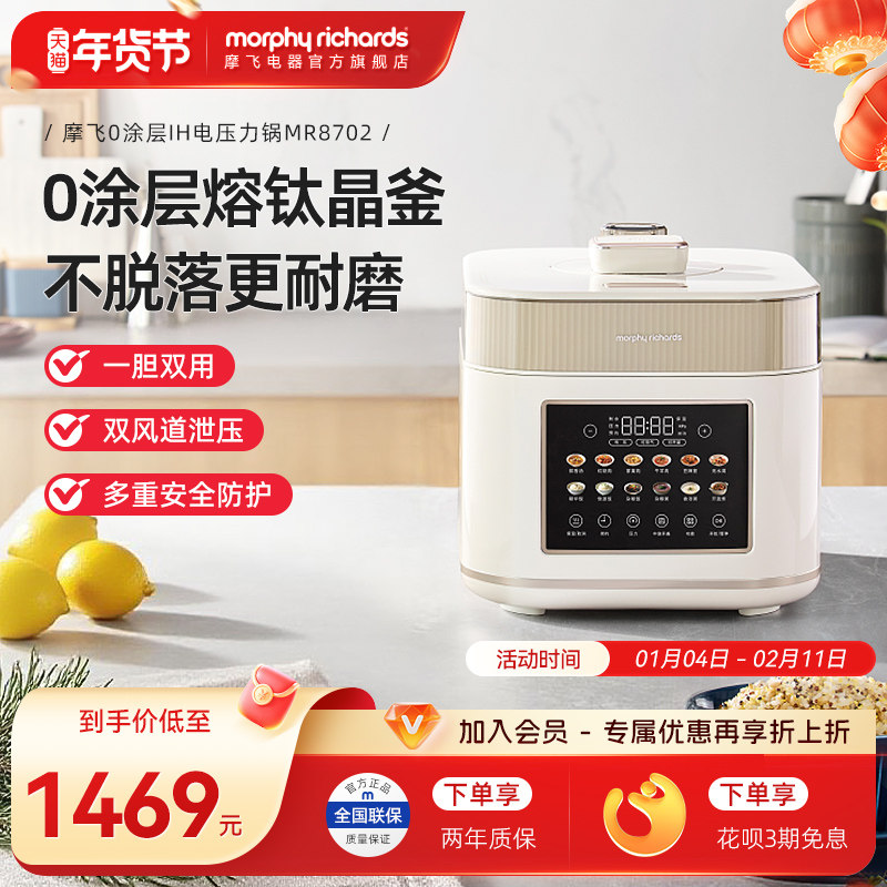 推荐:摩飞0涂层熔钛内胆IH电压力锅