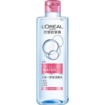 【强力卸妆,温和护肤】欧莱雅三合一卸妆洁颜水,针对眼唇面部多重污垢,轻松卸除防水化妆,有效清洁肌肤,同时保持肌肤水分与滋润度。温和配方,适合敏感肌肤使用。