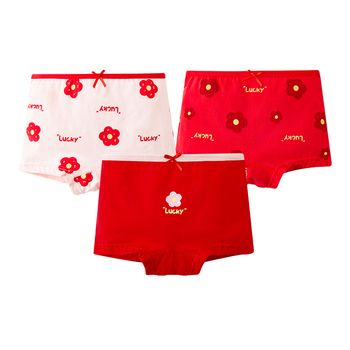 推荐:红豆女童本命年红色内裤纯棉女孩新年三角裤马年大童平角短裤抗菌