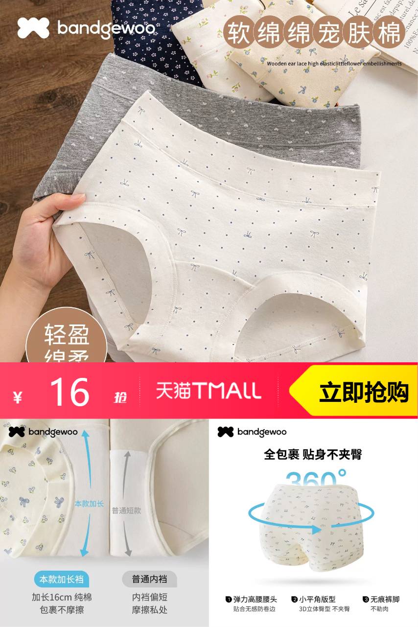 阪织屋平角内裤女纯棉3条装 1元减20 商品纠错