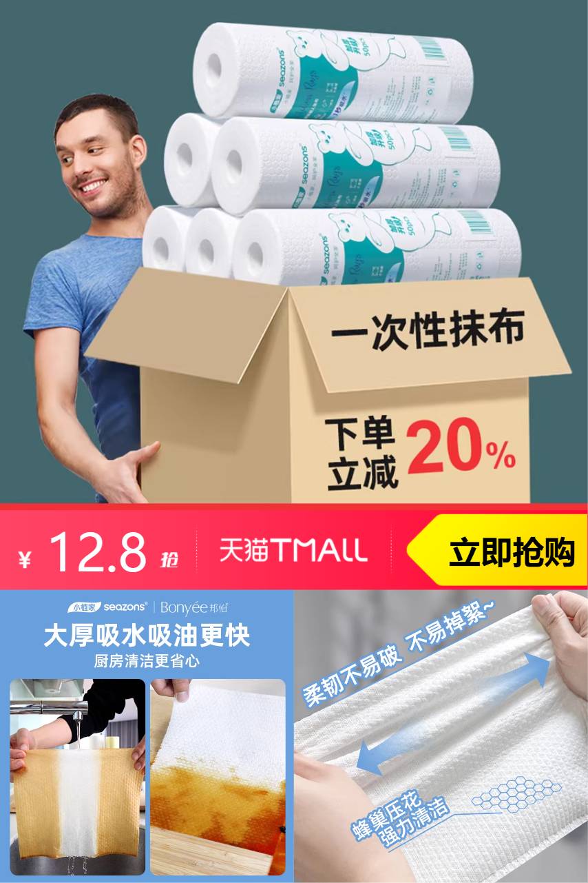 【淘金币1.34,首单礼金1,到手价10.46】小植家!懒人抹布,一次性悬挂式,不掉毛干湿两用,清洁专用,厨房用纸加厚洗碗巾