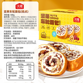 ⭕沃隆坚果车轮面包500g烘焙糕点