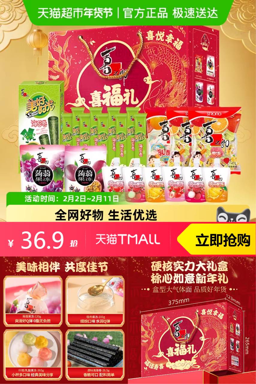 【原价58.9-17元立减-5圆券-88VIP95折1.85-淘金币1元=34.05】喜悦幸福中国年,喜福礼年货礼盒,超3斤半份量足,精美礼盒够体面~