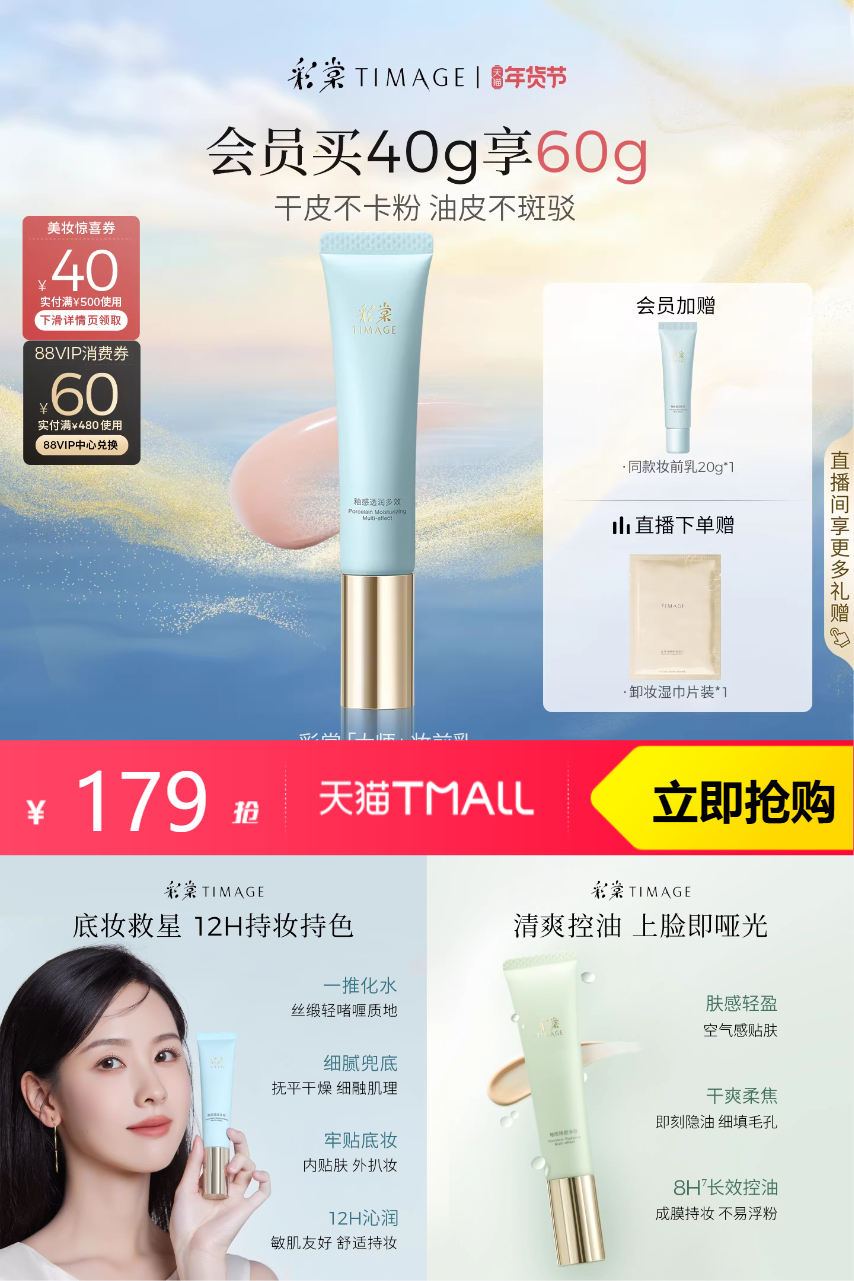 【叠加超级补贴礼金10.1+淘金币12.78+300-40会员券+500-40美妆券+88折消费券到手99左右!加赠同款妆前乳20g+卸妆湿巾1片!】贴合肤色,让你的妆容更加自然持久,是必备的妆前利器!