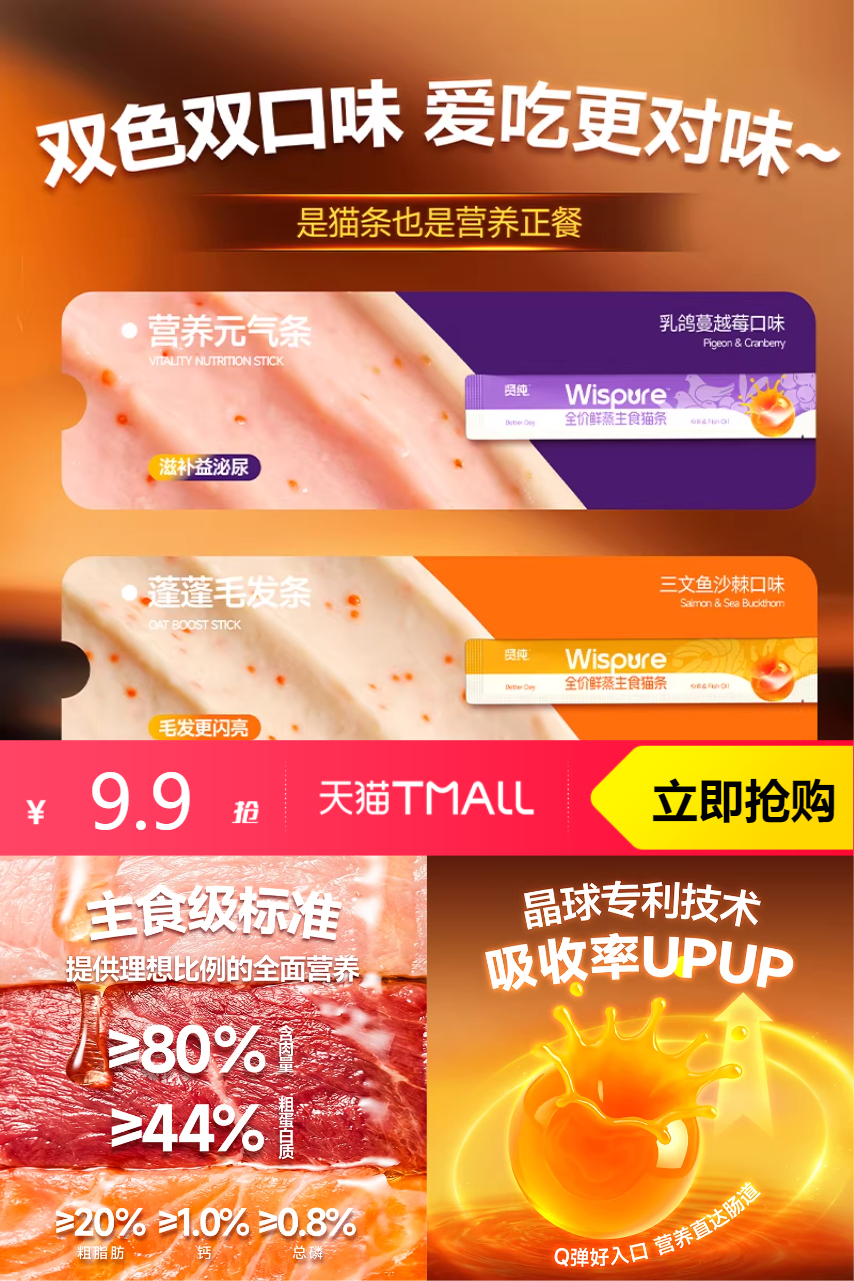 15条!贤纯全价猫用鲜蒸猫条 29元减14 商品纠错