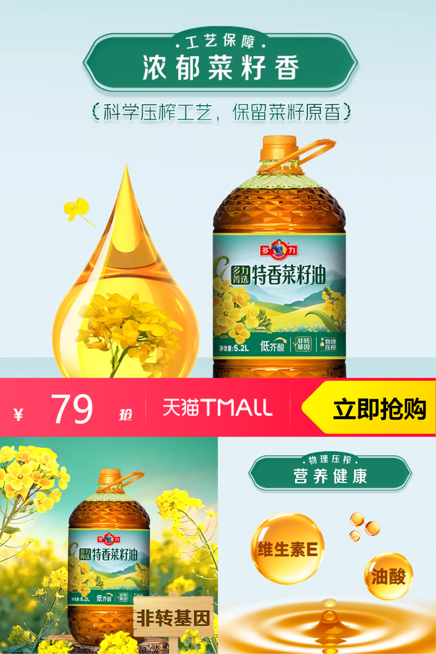 【闪购惊喜红包3-88会员3.5-超市券10-凑满200-25券到手仅需53.76左右】多力菁选特香菜籽油5.2L非转基因食用油,这款多力菁选特香菜籽油采用非转基因技术精制而成,是真正的5.2L大容量家庭食用油。它的营养价值丰富,选用独特的菜籽种子提炼,口感浓郁而持久。每一滴油都汇聚了大自然的精华和我们对品质的执着追求。