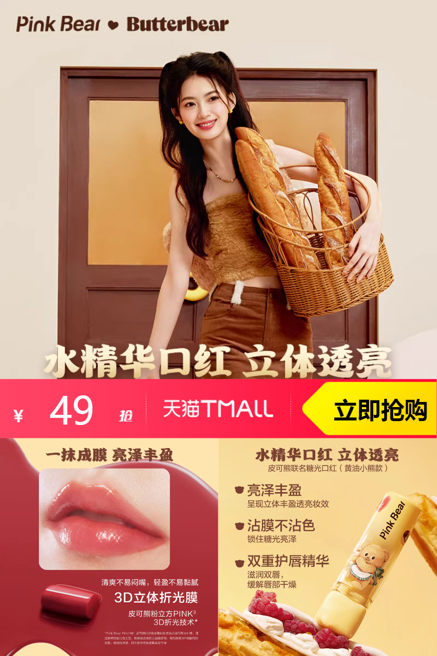 ⭕pinkbear皮可熊黄油小熊口红3支