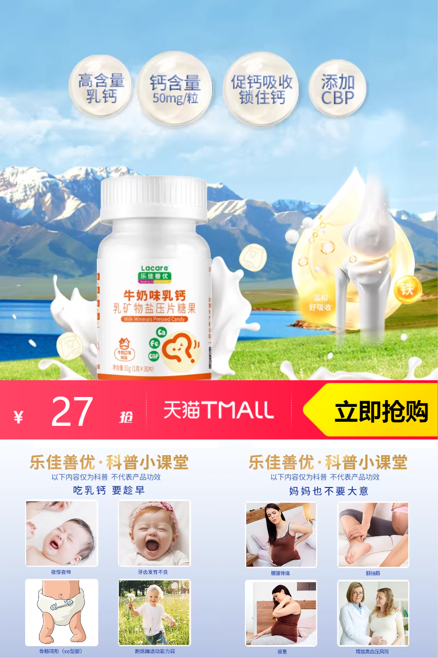 【1、拍2发3,到手3瓶共90粒 2、叠加88vip抵扣1.35元+淘金币4.08元+凑单消费券200-25抵扣2.69元+品牌红包3元=到手仅需15.87元。合计单瓶/5.29元】拍2发3佳善优牛奶味乳钙片丹麦进口30粒,钙铁同补补钙又锁钙。