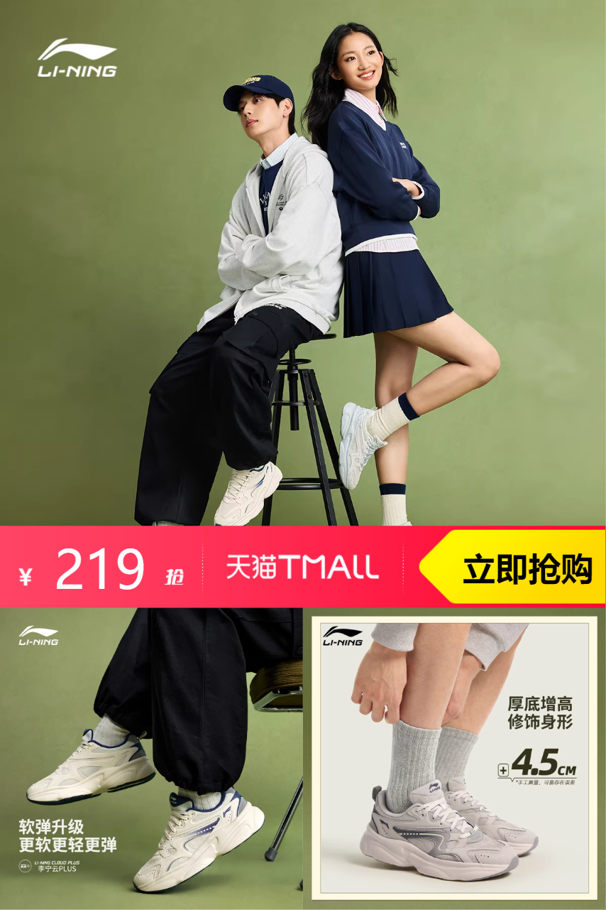 李宁 李宁奶椰丨休闲鞋2026夏季轻便运动鞋 249元减30 商品纠错