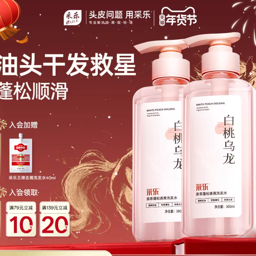 ⭕采乐无硅油白桃香氛洗发水300ml*3瓶