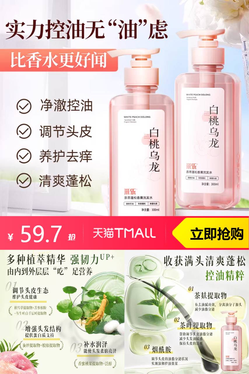 【淘金币8.98,到手价50.72,相当于16.9一瓶】无硅油配方轻盈不闷头皮,发根蓬松立挺不扁塌,绵密泡沫深层净油,控油持久、发丝柔顺不打结