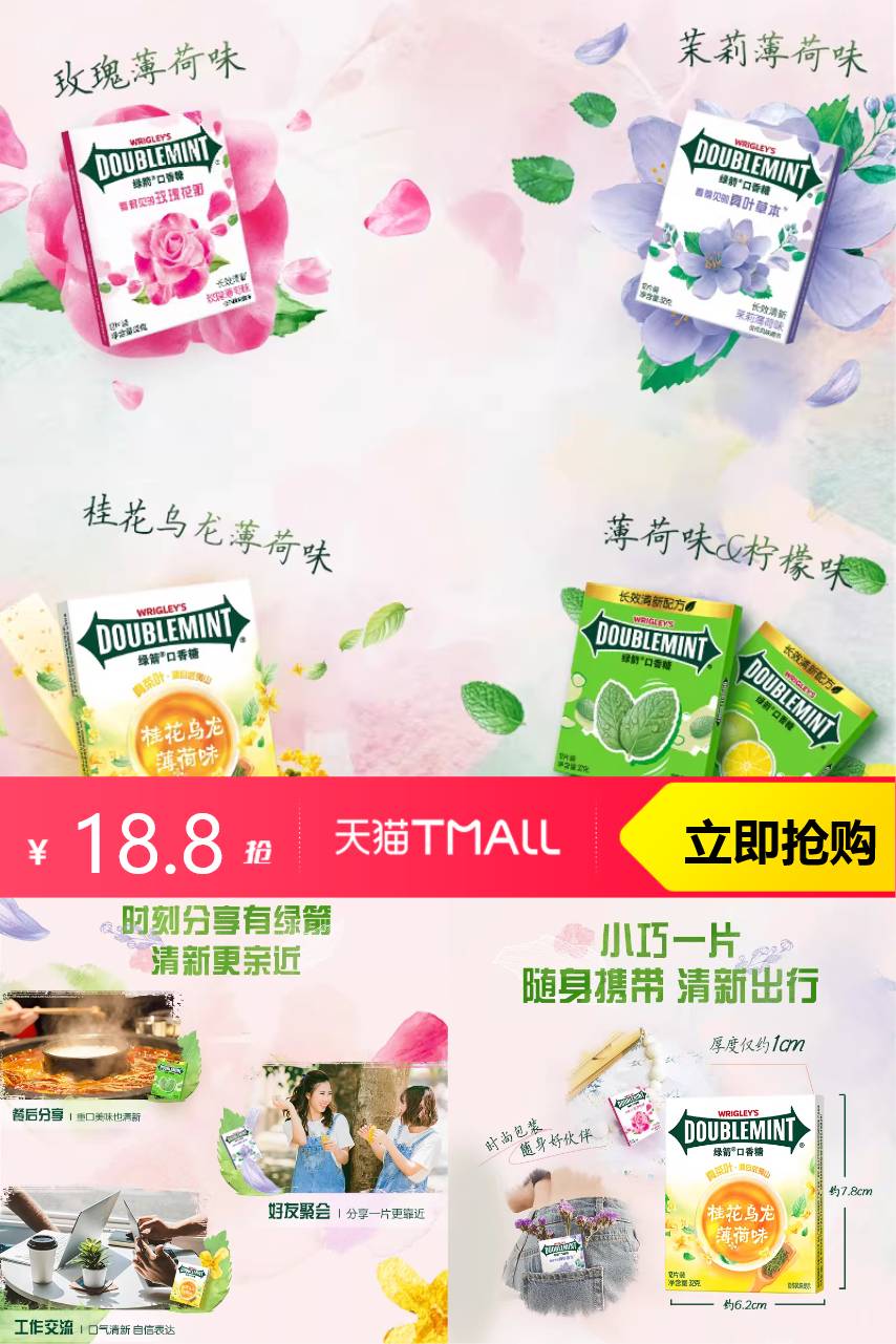 ⭕任选4赠2到手6!益达绿箭口香糖
