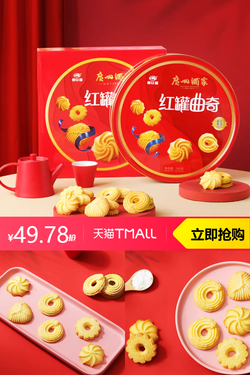 广州酒家 广州酒家红罐曲奇饼干金罐礼盒礼品500g 68元减18.22 商品纠错