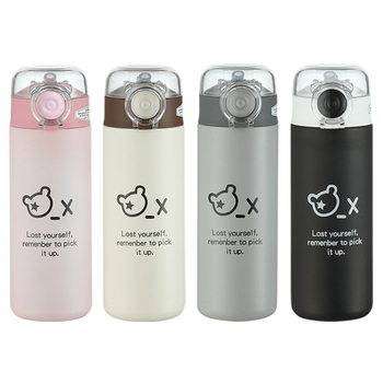▶便携小熊造型提手➡一拎即走。 ▶磨砂漆面耐脏防刮➡轻蹭不易刮花。 ▶防滑杯底➡稳固耐磨。 ▶安全小熊锁扣和密封防漏➡倒置不漏。