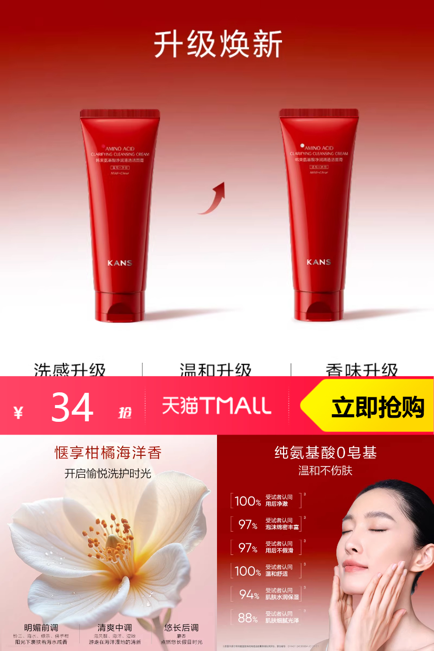 【任选3件 淘金币抵扣1元,88vip到手31元,折合10元/支】【韩束任选3件】韩束控油洁面100g,品质优选。