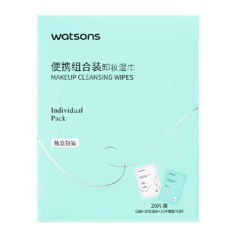 推荐:屈臣氏卸妆湿巾温和氨基酸清洁净澈洁面独立装便携(20片组合装)