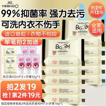 【拍1件券后29到手6块;拍2件叠加78-20元满减,共减30,券后48到手12块皂+2袋洗衣液40ml+牙膏10g*5支】,英氏婴儿洗衣皂儿童新生宝宝专用抑菌肥皂幼儿去污香皂内衣尿布皂