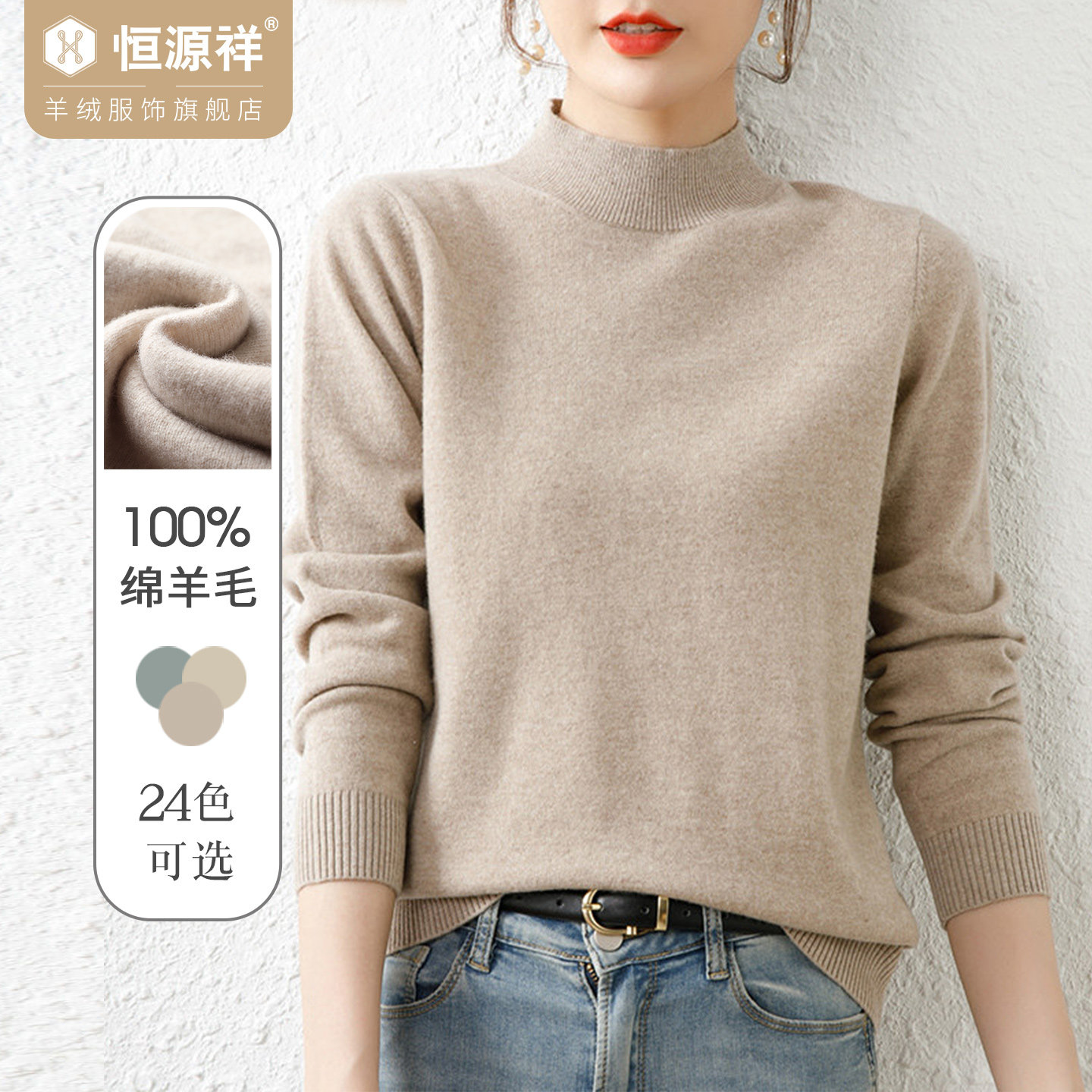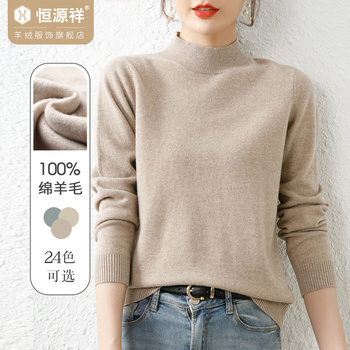 ⭕纯羊毛毛衣恒源祥套头半高领