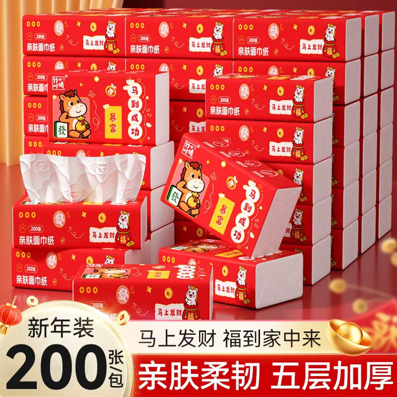 推荐:2026新年8包卡通马年抽纸盒装家用面巾纸卫生纸大箱装红色新年款