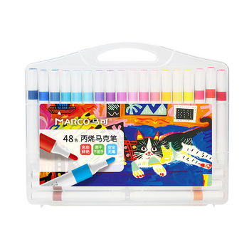 推荐:Marco马可丙烯马克笔小学生美术专用水彩笔美术生丙烯马克笔初中生专用马克笔不透色可叠色笔48色