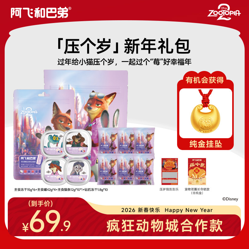 推荐:阿飞和巴弟疯狂动物城合作猫用全价主食罐头冻干零食猫咪新年礼盒
