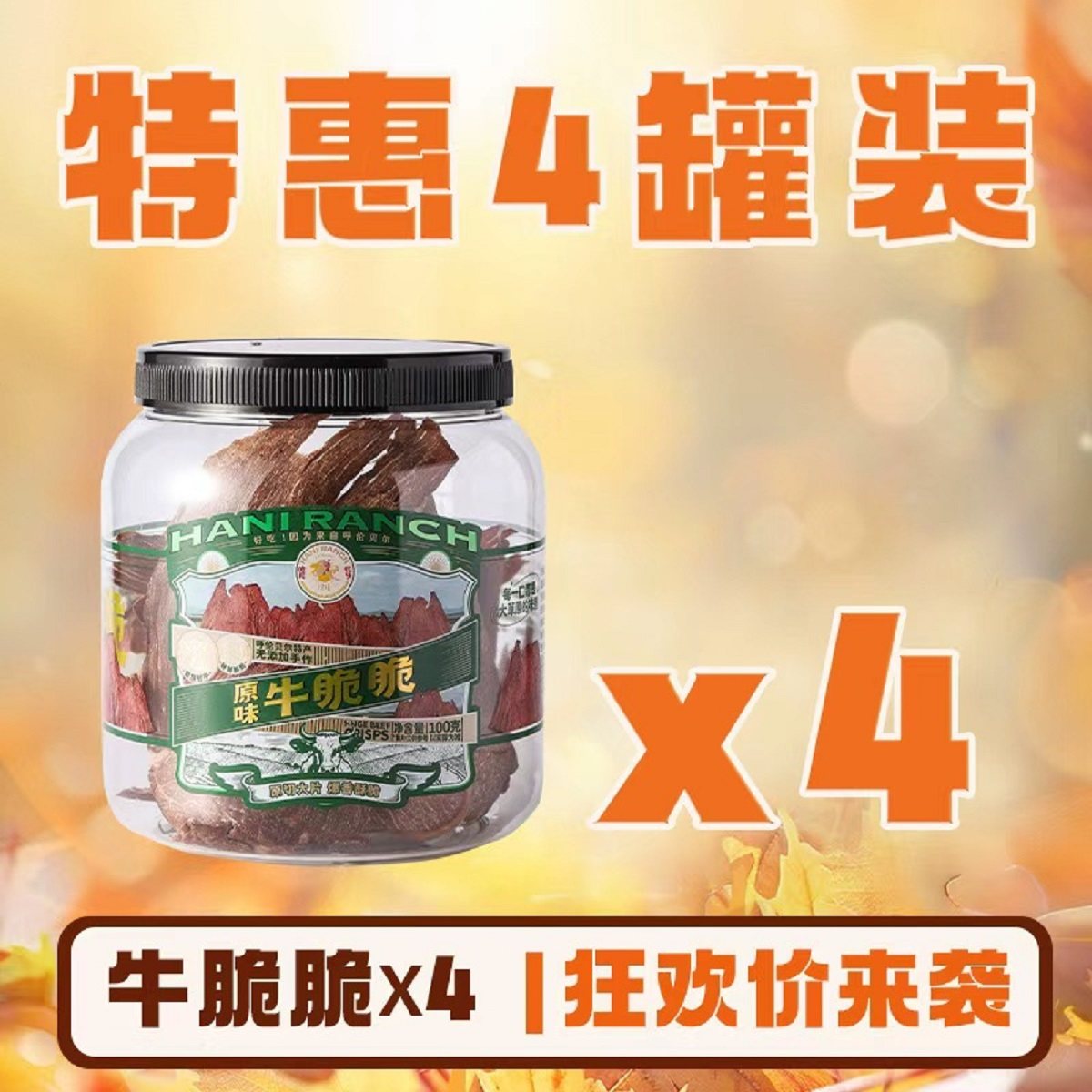 推荐:哈尼牧场牛脆脆牛脆片零食风干薄脆牛肉安格斯牛脆脆100g*4囤货装